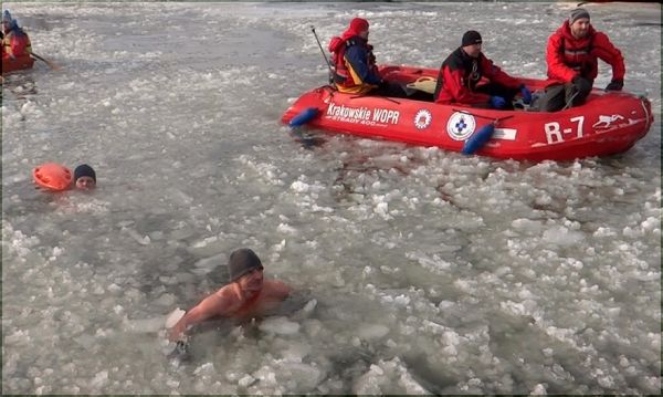 60 miłośników kąpieli w lodowatej wodzie uczestniczyło w ostatniej niedzieli w sztafecie, podczas której przez Wisłę pod krakowskim Wawelem przeciągano figurę smoka. Imprezę zorganizowano już po raz 7 i tradycyjnie dopuszczono do udziału w niej tylko zrzeszonych w klubach i dodatkowo – najbardziej doświadczonych morsów oraz foczki – bo tak nazywa się potocznie panie zażywające lodowatych kąpieli.