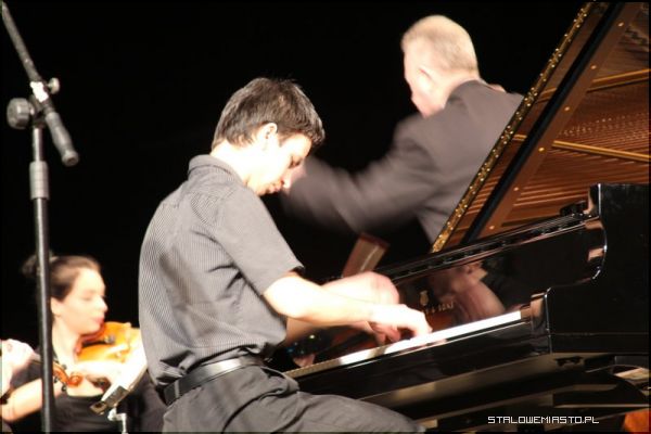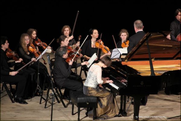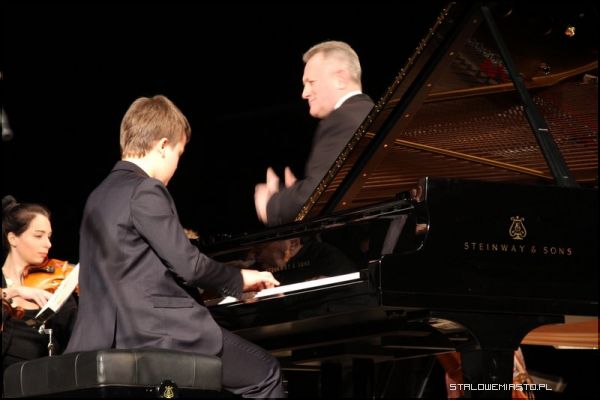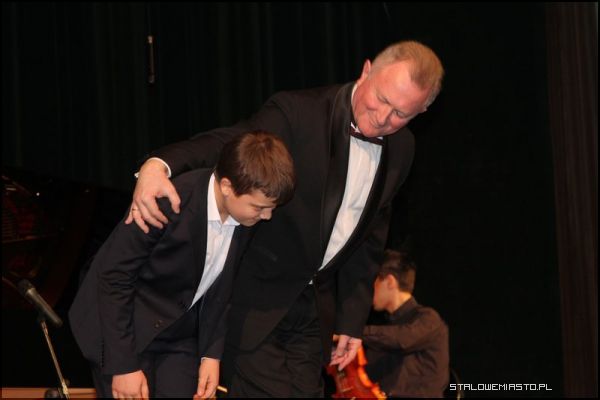 Czwartkowy koncert w MDK-u w Stalowej Woli zgromadził spore grono melomanów, których na pewno przyciągnęło nazwisko wielkiego kompozytora. Koncerty Jana Sebastiana Bacha - w "odcinkach" - zaprezentowali młodzi adepci szkół muzycznych Polski, Ukrainy i Słowacji, wśród nich najmłodszym uczestnikiem był uczeń stalowowolskiej PSM i zarazem I klasy gimnazjum Hubert Pisera. W wykonaniu tych bardzo wymagających dzieł wytrwale towarzyszyła im Narodowa Lwowska Orkiestra Kameralna "AKADEMIA" pod dyrekcją prof. Igora Pylatyuka, która na koniec zagrała razem z gwiazdą muzycznego wieczoru w MDK-u. A był nią pianista i kompozytor Konstantin Vilensky i jego jazzowe trio. Premierowo wykonali wariacje na temat Bacha na fortepian, trio jazzowe i orkiestrę smyczkową. Ta ostatnia na pewno napracowąła się najwięcej, co publiczność wynagradzała jej sowicie oklaskami. Wieczór prowadził dyrektor PSM w Kielcach Artur Jaroń, obok Magdaleny Pamułowej, nauczyciel Huberta Pisery.