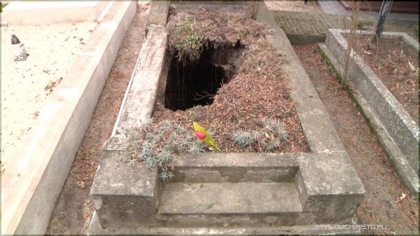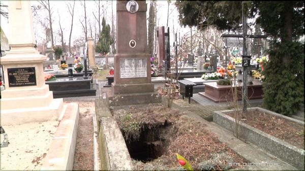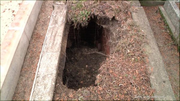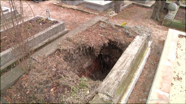 Tamtedy biegła jedna z dwóch nitek podziemnych tuneli łączących cmentarz z Klasztorem. Grabarze z "ProMorte" swojego czasu je odkryli. Niewykluczone że zapadł się fragment tunelu pod tym właśnie grobem. Lub że wierzchnia płyta nagrobka po prostu pękła pod ciężarem ziemi która na niej była.