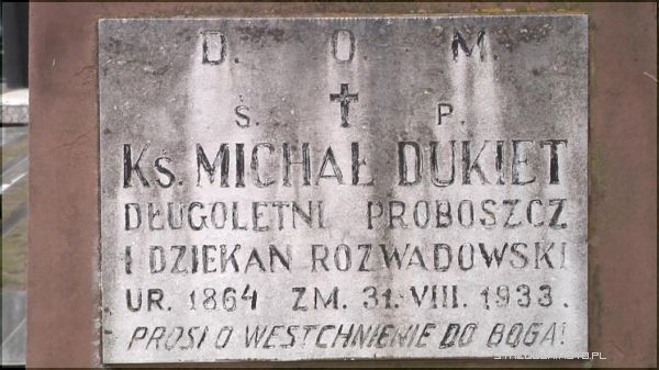 Zabytkowy nagrobek ks. Dukieta mieści się na rozwadowskim cmentarzu w sektorze F, zaraz obok nie takt dawno odrestaurowanego nagrobka powstańca styczniowego ks. Jana Leszczyńskiego. To kiedy dokładnie nagrobek został zniszczony stoi pod znakiem za pytania. Na pewno jeszcze w piątek 21 lutego wszystko było w porządku. Nic wtedy nie wskazywało na to, jakoby miało się coś stać.