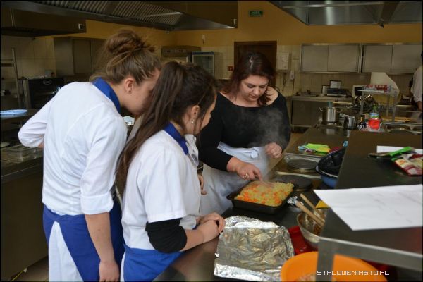 28 lutego zakończył się cykl 3 warsztatów kulinarnych dla uczniów. Warsztaty są elementem II edycji projektu "Powiat Stalowowolski od kuchni". Pierwsze poprowadzili państwo Agnieszka i Stanisław Smaliszowie, którzy uczyli jak przygotować: szczodraki, korowar czy kwas z zielonych gąsek. Podczas kolejnych spotkań tajniki przyrządzania lokalnych potraw zdradziła szefowa, działającego w Chwałowicach Gminnego Zespołu Kulinarnego, Leokadia Gugała. Tym razem młodzi kucharze dowiedzieli się jak przygotować barszcz chwałowski z kiełbasą i wędzonką i kotleciki z płatków owsianych. Ostatnie, trzecie warsztaty poprowadziły panie ze Stowarzyszenia „Perły Łęgu” z Bojanowa. Uczniowie nauczyli się przygotowywać 3 tradycyjne dania: gołąbki bojanowskie, kaczkę pieczoną w miodzie oraz piernik bojanowski. W warsztatach wzięło udział w sumie ponad 50 uczniów z Zespołu Szkół Ponadgimnazjalnych Nr 3 w Stalowej Woli. W ostatnich kulinarnych przygodach uczestniczyła także gościnnie grupa 4 uczniów z Tarnobrzega, z tamtejszej szkoły gastronomicznej.