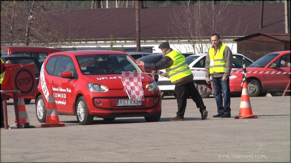 Na parkingu obok Delikatesów FRAC przy ul. Niezłomnych została przygotowana trasa, którą trzeba było pokonać w jak najlepszym czasie. Panie zasiadały „za sterami” Volkswagena. Kolejny punkt to test Stewarta. Próba polegała na przejeździe po przygotowanej trasie samochodem, na którym umieszczono talerz z piłeczką tenisową. W następnym zadaniu paniom przyszło zmierzyć się w jeździe na trolejach. Zadanie to nie należało do łatwych, gdyż mało kto wie, jak zachować się w trakcie poślizgu.