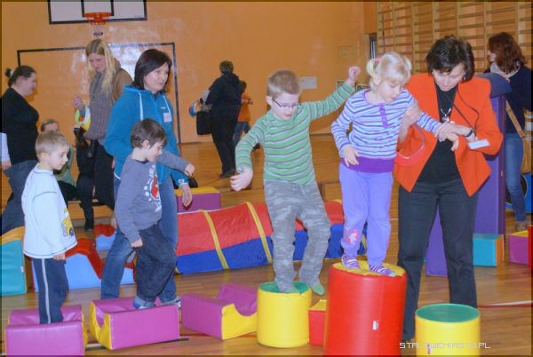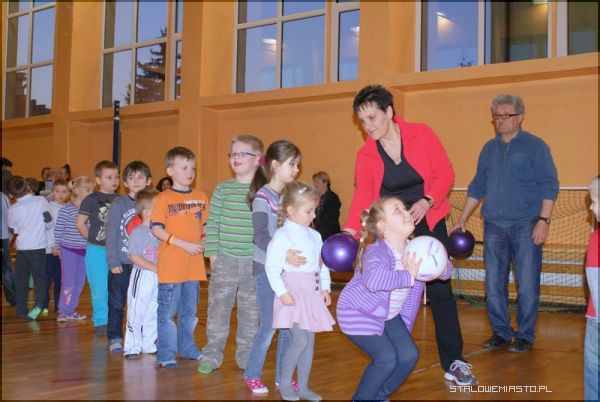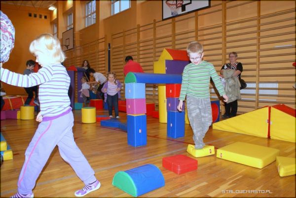 Propagując cele i zadania programu MEN „Ćwiczyć każdy może” zorganizowano dla przyszłych uczniów zabawy sportowo – rekreacyjne na sali gimnastycznej. Dzieciaki z dużym zaangażowaniem pokonywały tory przeszkód, grały w mini hokeja, poznawały elementy gry w kosza.