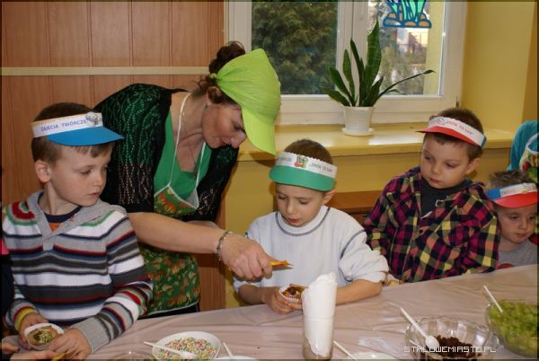 Już w holu szkoły dzieci powitały smakowite zapachy świeżo upieczonych ciastek przez uczniów klas I – III, uczestników koła „Zrób to sam”. W szkolnej jadalni maluchy mogły te ciastka dowolnie udekorować ulubionymi słodkimi i owocowymi dodatkami, a następnie zjeść w towarzystwie rodziców i starszych kolegów.