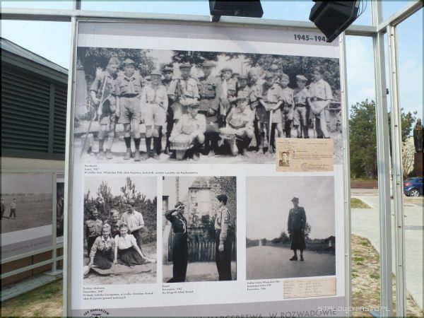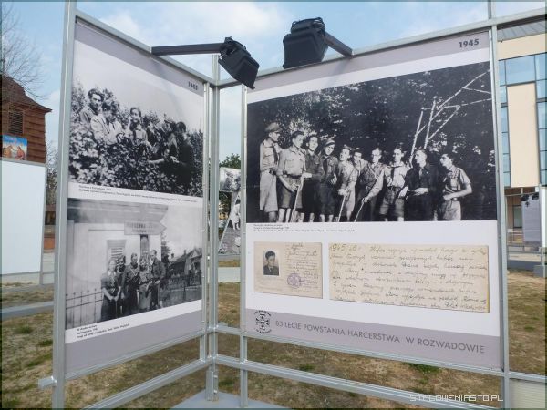 Młodzi ludzie w szarych mundurkach, kolorowe chusty, lilijki- widok, który każdy chyba zna. Wielu być może też nosiła kiedyś taki mundur. Harcerstwo na stałe wpisało się w krajobraz tego kraju i chociaż dzisiaj może nie spotkamy się z nimi tak często, stanowi przecież znaczący fragment naszej historii- tej wielkiej, narodowej, ale i takiej bliskiej, lokalnej. To, co tutaj zobaczymy, to taka właśnie opowieść. To zapisany na fotograficznej kliszy kawałek czyjegoś życia, kilka chwil, trochę wspomnień, jakaś dawna przygoda, która dzisiaj powróci dzięki tej wystawie. 85 lat w wielowiekowej skali naszych dziejów to raczej niewiele, ale dla dla kilku pokoleń mieszkańców tych okolic to jak każda historia, zaczyna się dawno, bo prawie 100 lat temu. Nie w samym Rozwadowie, ale w pobliskim Nisku, gdzie niemal od pierwszych miesięcy po odzyskaniu niepodległości funkcjonowała szkoła gimnazjalna, a w niej drużyna harcerska, skupiająca w swoich szeregach młodzież z całej okolicy. Tutaj mieszkańcy Rozwadowa mieli możliwość po raz pierwszy zetknąć się z harcerstwem, które na ziemiach polskich powstało niespełna dziesięć lat wcześniej. Szybko też okazało się, iż chętnych jest tak wielu, że od 1929 roku istniał już w Rozwadowie zastęp „Orłów”. Poczałkowo w prywatnym mieszkaniu, a po kilku latach w miejscowej szkole podstawowej zorganizowano harcówkę. Tam odbywały się spotkania, w programie były też akademie i wieczornice, a nawet przedstawienia teatralne, w których uczestniczyli wszyscy okoliczni mieszkańcy.