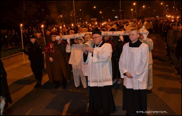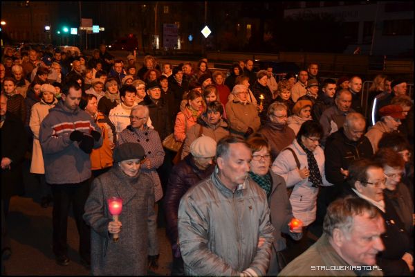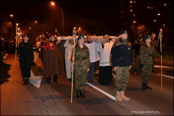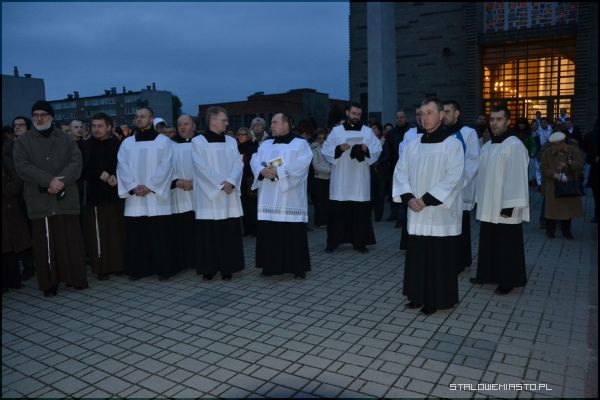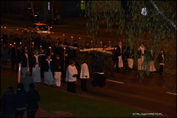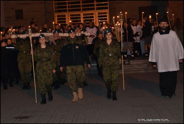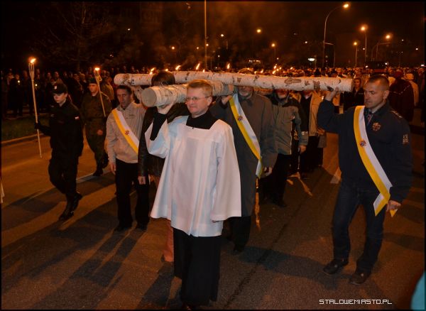 - Niebawem przeżywać będziemy kanonizację błogosławionego Jana Pawła II. Te słowa wysłuchane o krzyżu świętym niech będą dla nas podczas tej drogi krzyżowej przedmiotem szczególnej refleksji, abyśmy jeszcze bardziej zaufali krzyżowi świętemu, wszak to znak zwycięstwa. Na nim zbawiciel świata pokonał śmierć, zło, szatana i my zawsze, gdy ofiarujemy Panu Jezusowi ukrzyżowanemu to, co dla nas jest trudne, z czym sobie nie radzimy, z pomocą Boża zawsze zwyciężymy. Chrystus Pan mówi: ufajcie, jam zwyciężył świat, stąd patrzymy z nadzieją na ten znak święty- dwie belki: poprzeczna i pionowa-rozpoczął rozważania proboszcz MBKP ks. Edward Madej.