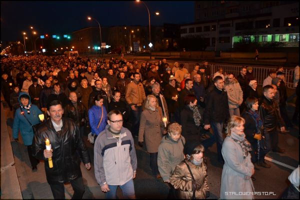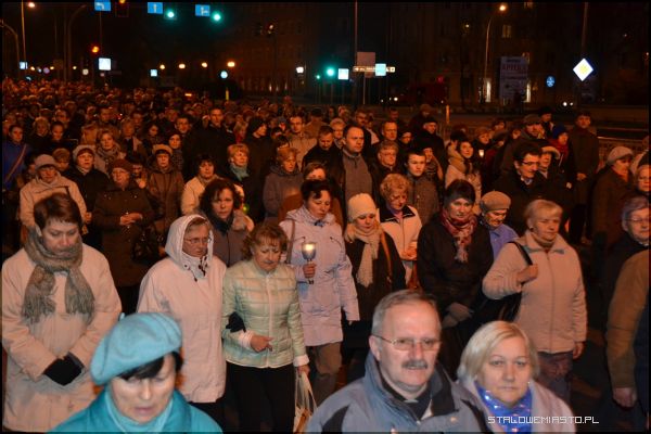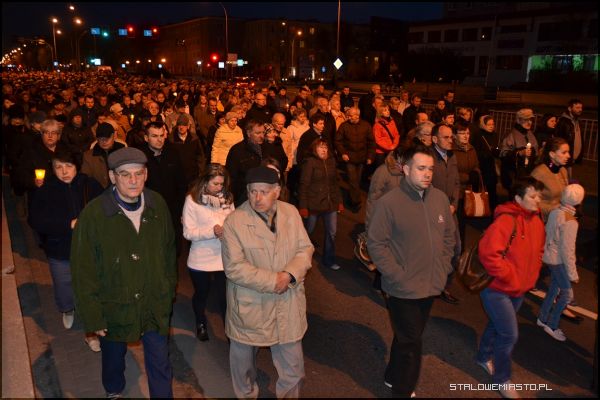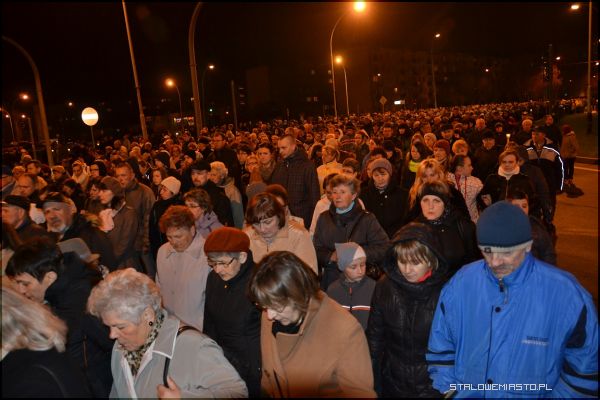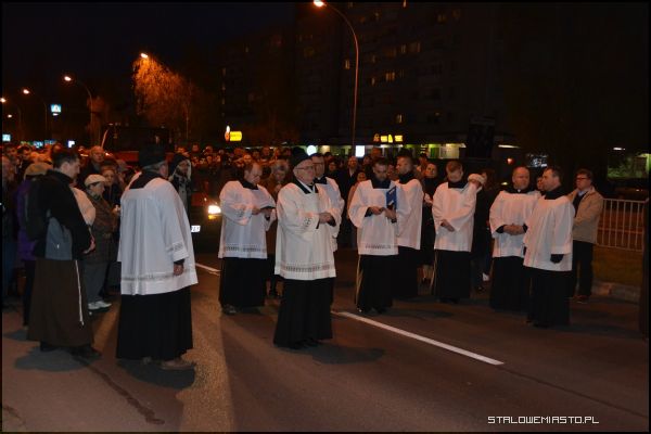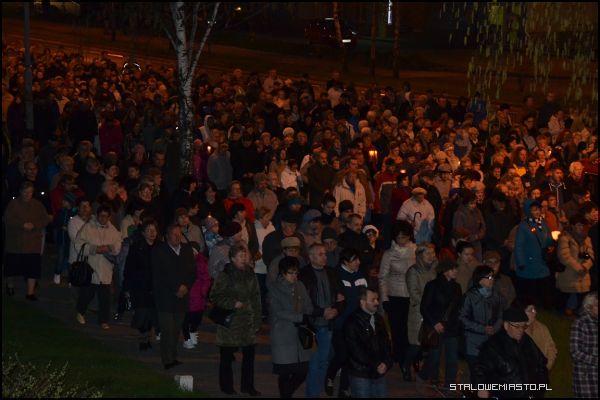 Alejami Jana Pawła II szło i modliło się około 2 tysiące wiernych. Za krzyżem z pochodniami podążali harcerze, Rycerze Kolumba, służba liturgiczna ołtarza, kapłani i wierni. Wielu niosło świece i lampiony. Co jakiś czas przystawano, by rozważać kolejne stacje drogi krzyżowej. Zmieniali się również idący na czele parafianie dźwigający brzozowy krzyż. W tym roku droga krzyżowa kończyła się przy rozwadowskiej farze. Tam nastąpiło poświęcenie nowego parkingu wybudowanego na potrzeby uroczystości koronacji Matki Bożej Szkaplerznej.