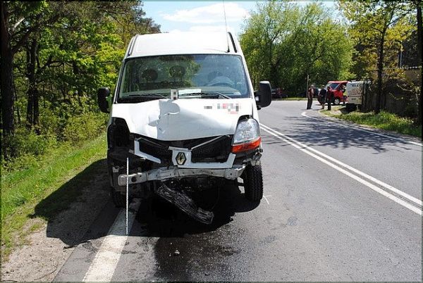 Do wypadku doszło na drodze wojewódzkiej W 871 na trasie Stalowa Wola - Tarnobrzeg przy wjeździe na wysypisko śmieci tuż przed godz. 11. Jak wynika ze wstępnych ustaleń policjantów pracujących na miejscu zdarzenia 21-letni mężczyzna, mieszkaniec powiatu stalowowolskiego, jadący samochodem marki Renault Master uderzył w tył pojazdu citroen jumper, którego kierowca 56-letni mężczyzna wykonywał manewr skrętu w lewo. W wyniku uderzenia kierowca citroena doznał obrażeń i został przewieziony do stalowowolskiego szpitala.