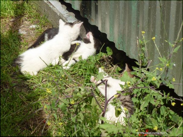 Kotkami w dalszym ciągu nikt się nie zajmuję. Urząd Miasta przeznaczył pieniądze na sterylizację kotki, ale nie ma się kto zająć żeby złapać kotkę z kociętami. Głodne i spragnione czekają na dobrego człowieka, który im pomoże