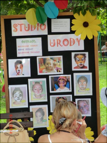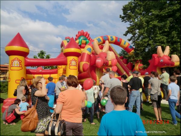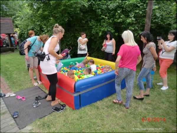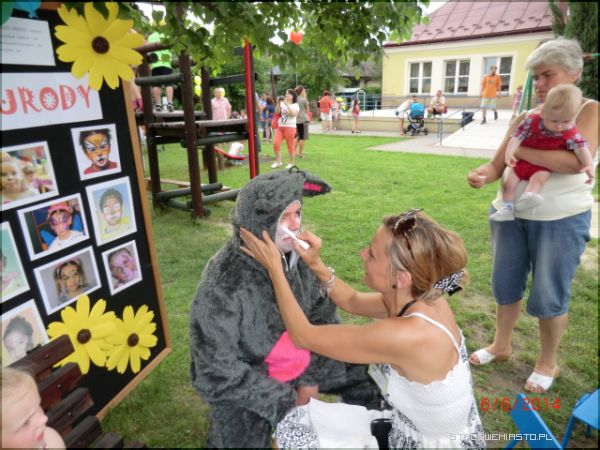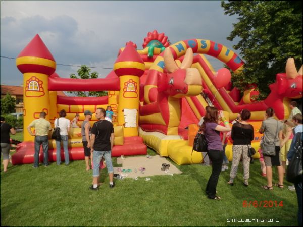 Atrakcjami dla dzieci był dmuchany zamek, zjeżdżalnia, loteria fantowa, studio urody, przejażdżka na koniku oraz kule wodne. Aby nasi uczestnicy mieli siłę do zabawy w każdej chwili mogli się posilić przy stoiskach z kiełbaskami, domowymi ciastami i napojami. Była również wata cukrowa, popcorn i oczywiście fontanna czekoladowa.