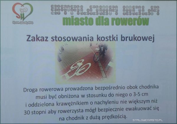 Członkowie Ruchu Społecznego Kocham Stalową Wolę (radni Rafał Weber i Lucjusz Nadbereżny) postulują, aby Stalowa Wola, na wzór innych miast, wdrożyła standardy techniczne dla infrastruktury rowerowej, które zagwarantują tworzenie przyjaznej, komfortowej i przede wszystkim bezpiecznej sieci dróg rowerowych. W postulatach znalazły się uwagi, by w przyszłości powstawały asfaltowe ścieżki rowerowe, odseparowane od ruchu pieszych oraz pojazdów. Chodzi również o eliminację wszelkich barier rowerowych, które z jednej strony utrudniają swobodny przejazd, z drugiej stanowią realne zagrożenie bezpieczeństwa rowerzystów.