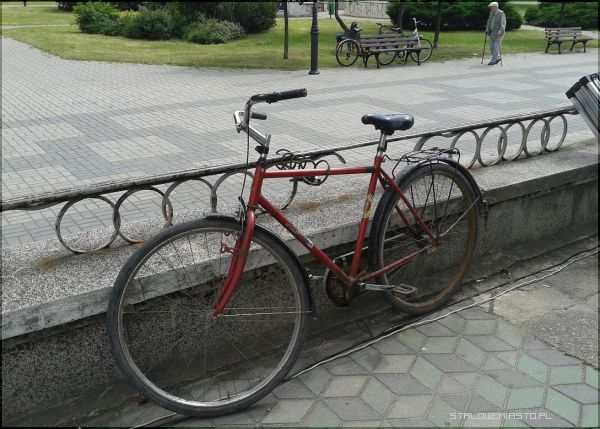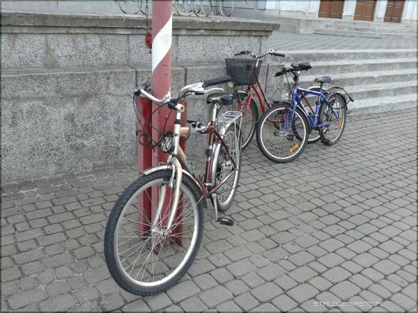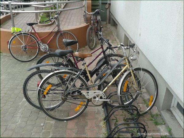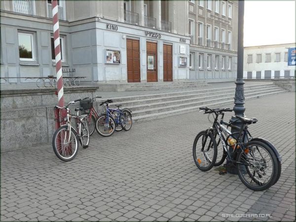 Miejski Dom Kultury, brak stojaków na rowery, Komisji Edukacji Narodowej, przed sklepami.