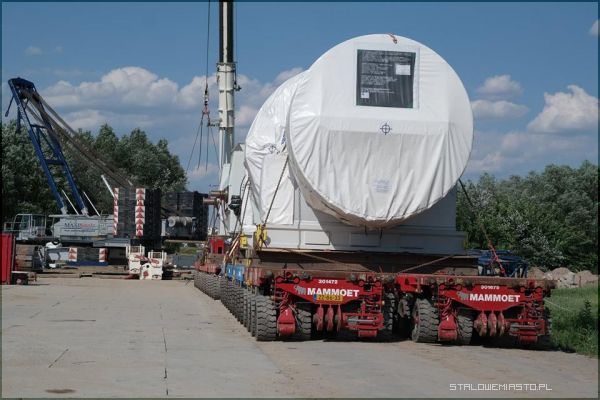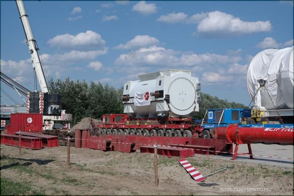 Przypomnijmy, że w połowie maja na barkach do Stalowej Woli przypłynął ogromny transport zawierający podzespoły dla powstającego bloku gazowo-parowego. Pod koniec maja rozpoczęto trudne przedsięwzięcie logistyczne, bowiem codziennie zabierany był jeden z dostarczonych elementów na działkę ulokowaną obok LO im. KEN, która została przystosowana do tego celu. Warto tutaj podkreślić, że podzespoły, które były transportowane ważą po 200-300 ton. Ze względu na gabaryty i ciężar transport odbywał się tylko i wyłącznie w godzinach nocnych.
