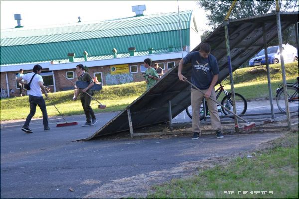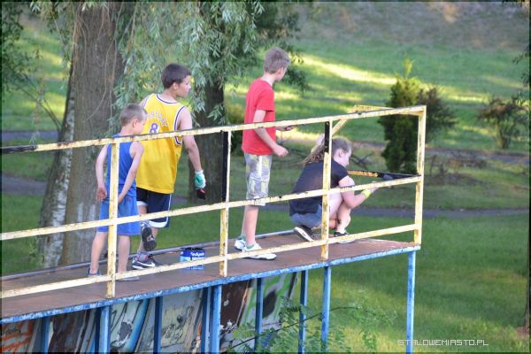 Robota szła pełną parą. Malowane także były poręcze ramp. Teraz są one w barwach naszej stalowowolskiej drużyny piłkarskiej. Pomagali również przedstawiciele z Polskiego Klubu Ekologicznego "Przyjaciele Ziemi”.