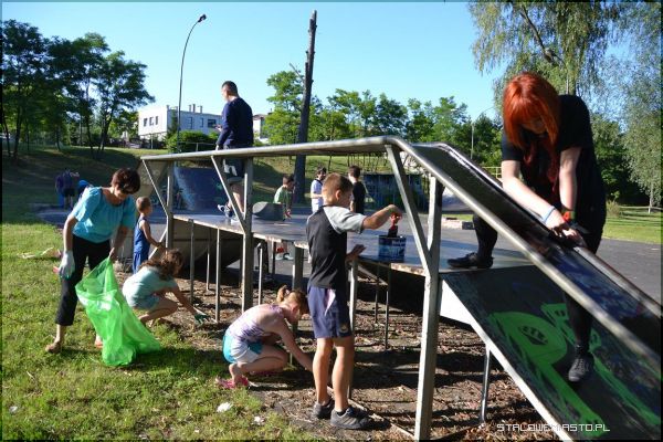 Punktualnie o godz. 18.00 w skateparku mieszczącym się przy ul. Przestrzennej zebrała się spora grupa dzieci i młodzieży. W dłoń poszły szczotki, łopaty, pędzle…
