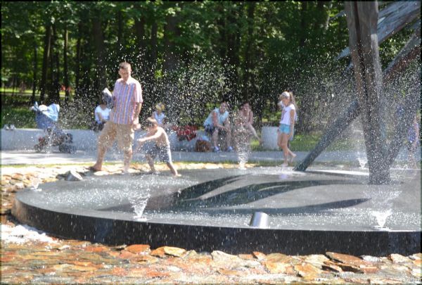 ~mieszkankaStw, krzywda może się stać wszędzie. Nie ma 100% ochrony. Za te dzieciaki odpowiadają rodzice a nie Ty czy ja, a już najmniej właściciel terenu. Fontanna i ten strumyk jest dla ludzi ale nie tylko do podziwiania. To nie eksponat muzealny. A dzieciaków nie uwiążesz w domu w taki upał wiec nie dziw się, że korzystają.