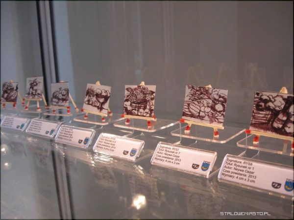 W trakcie dwudniowej wystawy pn. Weekend z miniaturową sztuką zaprezentowane zostały eksponaty tyskiego Muzeum, które były reprezentowane przez miniaturowe prace artystów profesjonalnych z Polski, Brazylii, Węgier i Ukrainy. Zobaczyć można było obrazy, grafiki, rysunki, prace ceramiczne i rzeźby. Szczególną uwagą zwiedzających cieszyły się eksponaty wykonane z czekolady, złota, srebra i kamieni szlachetnych. Prezentowane prace przedstawiały m. in. pejzaże, autoportrety, zamki, postaci (np. święta Barbarę), czekoladowy relief Kościoła Mariackiego w Krakowie . Wszystkie obrazy, grafiki i rysunki umieszczone zostały na sztalugach z zapałek, co było dodatkową atrakcją dla dzieci.
