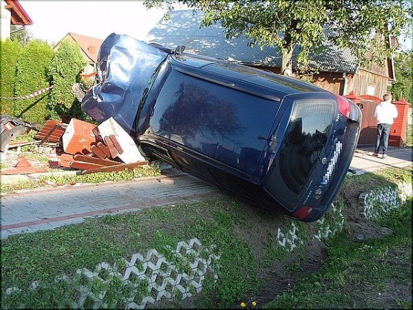 pieknie zaparkował samochód, musiał niezle szybko samochodem jechać jeśli tak sie skończyło a był trzeżwy