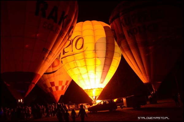 Chętni mogli wzbić się w górę i podziwiać miasto z lotu ptaka. Dla mniej odważnych pozostawała obserwacja balonów, show i zabawa przy dźwiękach piosenek Pawła Gielarka. Nocna Gala Balonowa rozpoczęła się około 19:30 po przybyciu załóg na boczną płytę stadionu MOSiR-u…
