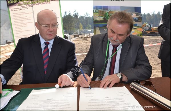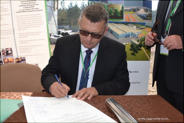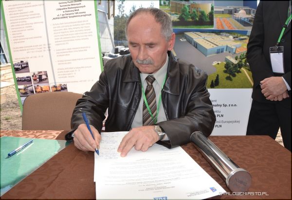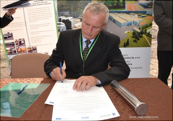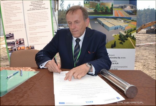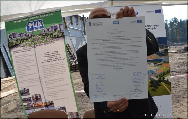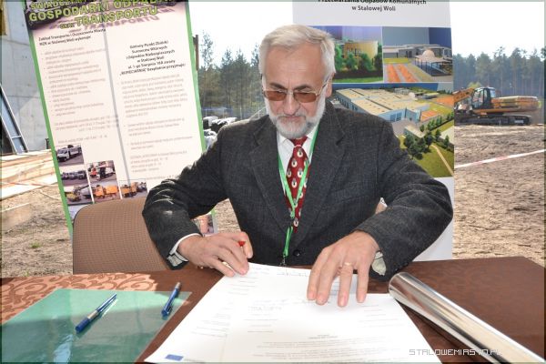 Wszyscy licznie zgromadzeni goście byli świadkami podpisania Aktu Erekcyjnego przez prezydenta Stalowej Woli Andrzeja Szlęzaka, prezesa Zarządu Miejskiego Zakładu Komunalnego Roberta Chciuka oraz przedstawicieli sygnatariuszy porozumienia miedzygminnego tj. Gmin- Baranów Sandomierski, Bojanów, Gorzyce, Grębów, Nowa Dęba, Pysznica, Radomyśl nad Sanem, Zaklików i Zaleszany. Porozumienie podpisane zostało 21 czerwca 2012 r. w zakresie wspólnej gospodarki odpadami, a także utworzenia spójnego systemu spełniającego dyrektywy Unii Europejskiej dotyczące odzysku i recyklingu odpadów. Jego treść przybliżył prezes MZK. Podpisany Akt trafił do stalowej tuby, po czym został wmurowany na placu budowy Zakładu Mechaniczno- Biologicznego Przetwarzania Odpadów Komunalnych w Stalowej Woli.