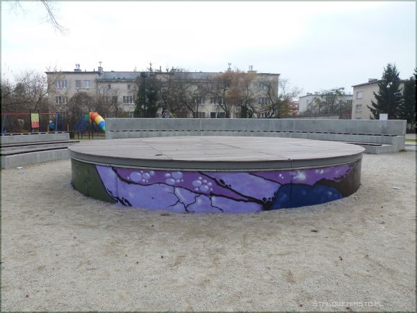 fajnie, bo do tej pory amfiteatr zdobiły tylko malunki kredowe dzieciaków, teraz wygląda to świetnie, miło jest spojrzeć, przykuwa uwagę i zachęca do wejścia, pomysł jak najbardziej na plus