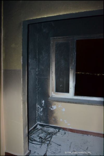 Jak się okazało do pożaru doszło na klatce schodowej X piętra. Prawdopodobnie wskutek podpalenia doszczętnie spłonął wózek dziecięcy. Ściany piętra zostały osmolone, a wokół unosił się dym i nieprzyjemna woń. Na szczęście ogień nie przedostał się do mieszkań. Strażacy szybko ugasili pożar i przewietrzyli klatkę schodową.
