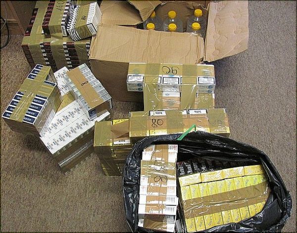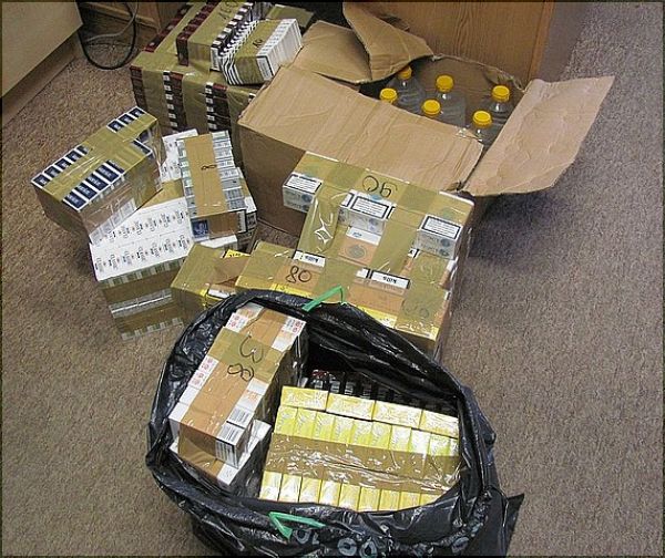 "Zgodnie z przepisami czyn ten zagrożony jest karą grzywny i przepadkiem zabezpieczonych papierosów i alkoholu."