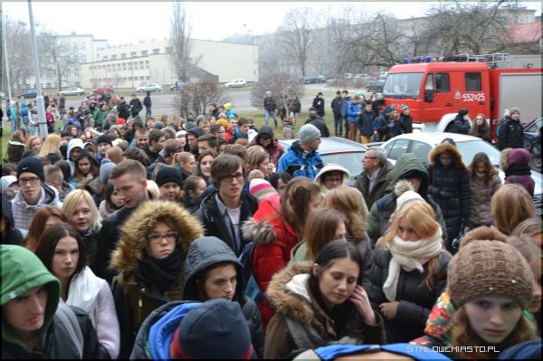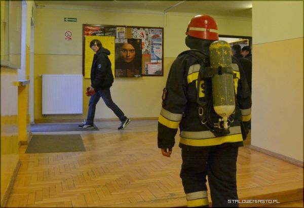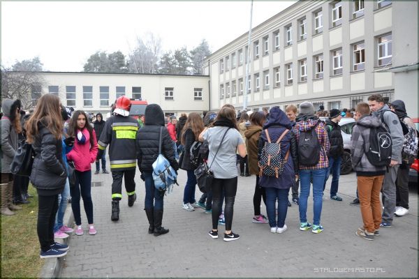 Po korytarzach LO im. KEN w Stalowej Woli unosił się dziwny, duszący zapach. Dyrektor szkoły, zgodnie z przepisami zarządził ewakuację. Uczniowie wraz z nauczycielami przenieśli się więc na dziedziniec. Na miejsce zdarzenia przybyła straż pożarna i policja. Strażacy w maskach tlenowych przystąpili niezwłocznie do poszukiwania źródła gazu.