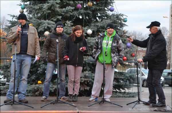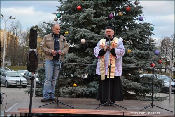 - Spotykamy się już po raz czwarty na tym placu. Zawsze jest taka tradycja, że spotykamy się przed tą faktyczną wigilią po to, żeby ci, którzy w wigilię będą sami, żeby dzisiaj poczuli ten klimat świąt. Nie ma jeszcze śniegu. Z tego co wiem, ma się spóźnić. Patronat honorowy nad tą wigilią objął prezydent pan Lucjusz Nadbereżny, starosta stalowowolski pan Janusz Zarzeczny– mówi Konrad Mężyński, prezes Stowarzyszenia Dobro Powraca.