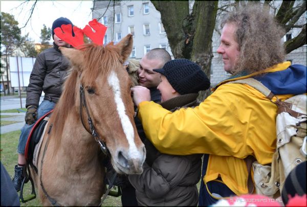dwie zakłamane twarze kibiców: na Wigilijce bogobojni jak aniołki, a na meczach i po nich bluzgi, chamstwo, awanturnictwo i ubliżanie ludziom z innych miast którzy kibicują innym drużynom. nie na darmo całe zastępy pilicjantów uzbrojonych po zęby ich eskortują i pilnują. Kibole w swym zakłamaniu osiągnęli Himalaje hipokryzji. ich obecność na takich wydarzeniach jak Wigilijka dla mieszkańców tylko kompromituje tę wspaniałą uroczystość.