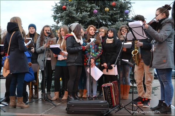 W tym roku podczas miejskiej wigilii można było posłuchać występów kilku chórów. Dla uczestników przygotowano wiele pyszności. Był bigos, kapusta z grochem, barszcz czerwony, owoce, ciasta, ciasteczka i inne smakołyki. Dużą atrakcją, zwłaszcza dla dzieci były konie „przebrane” za renifery. Na wigilię przybył także święty Mikołaj, który częstował łakociami. Jak to na wigilii bywa wszyscy łamiąc się opłatkiem składali sobie życzenia. Ks. prałat Marian Balicki odczytał fragment Pisma Świętego i złoży wszystkim serdecznie życzenia.