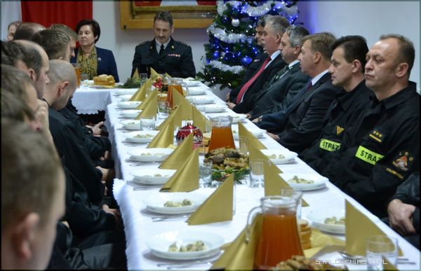Strażacy oraz zaproszeni goście podzielili się opłatkiem i zasiedli do wigilijnego stołu, na którym nie zabrakło, jak to co roku bywa, tradycyjnych dań. Według przepisu komendanta PSP został przygotowany barszcz czerwony oraz przepyszny karp pieczony w ziołach, który każdy z gości niezwykle chwalił za kruchość, delikatność i wyjątkowy smak.