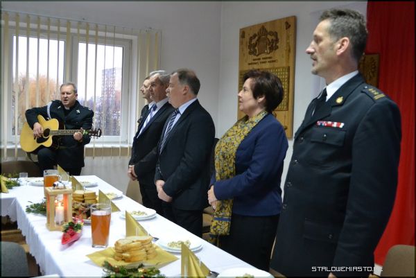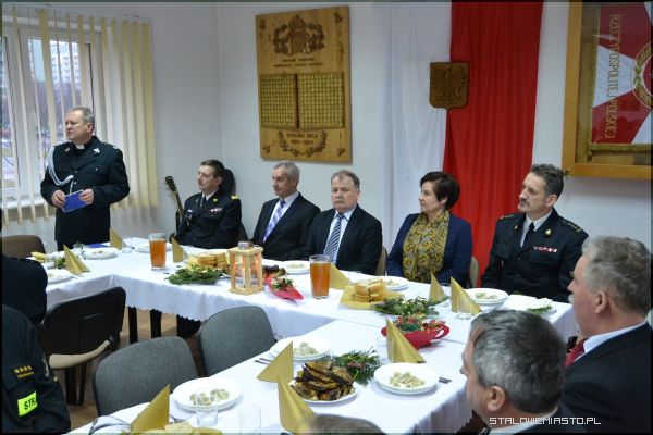 Po życzeniach komendanta strażacy oraz wszyscy zaproszeni goście wspólnie zaśpiewali kolędę „Wśród nocnej ciszy”. Kpt. Krystian Bąk odczytał fragment pisma świętego z ewangelii wg św. Łukasza. Głos zabrał także ksiądz kapelan Straży Pożarnej, który przypomniał co jest najważniejsze w nadchodzących świętach.