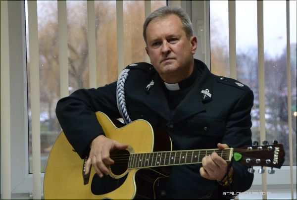 -leo- ten pan druch ochotnik, na ochotnika wziął z sobą gitarę i zaczął grać szlagiery Carlosa Santany, z boczku leży rogatywka w którą każdy mógł rzucić co łaska. Mundurowi tak jakby nie mogli sami z sobą się spotkać tylko jeszcze tylu obcych i dlatego robili złą minę do dobrej gitarowej gry.