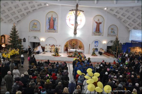Hasłem tegorocznych wielkich ulicznych jasełek było "Pokój i radość w rodzinie. Proszę, dziękuję, przepraszam". Eucharystię uświetnił chór z Miejskiego Domu Kultury i schola dziecięca. Na końcu poświęcono kadziło i kredę, którą wierni wypisują na drzwiach łacińskie symbole C+M+B - Christus Mansionem Benedicat (Niech Chrystus błogosławi temu domowi) lub K+M+B- co nawiązuje do imion trzech króli (Kacpra, Melchiora i Baltazara).