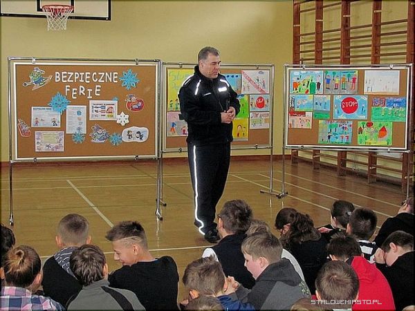 Stalowowolscy policjanci spotkali się w z uczniami Szkoły Podstawowej nr 1 w Stalowej Woli. Spotkanie było okazją do rozmów o bezpiecznym zimowym wypoczynku. Podczas spotkanie miało również miejsce wręczenie nagród uczestnikom konkursu pn. "Stop przemocy i agresji".