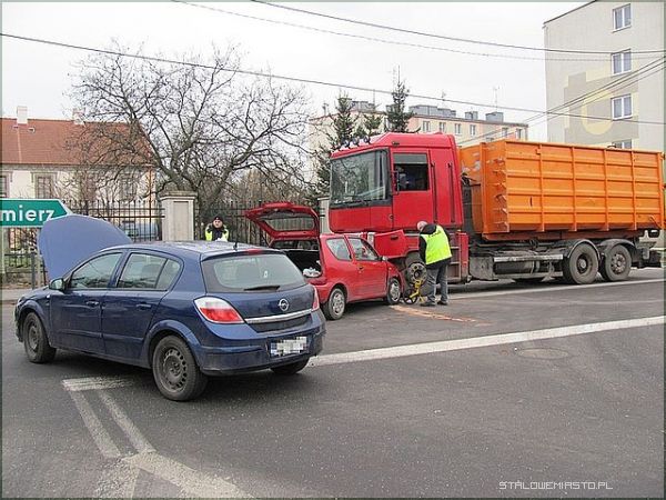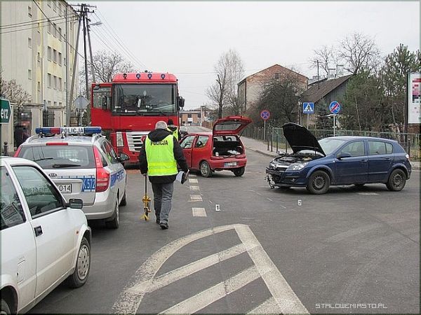 Do wypadku doszło tuż przed godz. 8.00 W zdarzeniu brały udział dwa samochody osobowe i samochód ciężarowy. Dwie osoby ranne przetransportowano do szpitala w Stalowej Woli. Obrażeń doznała 43-letnia kierująca seicento oraz 38-letnia kobieta prowadząca opla astrę. Policjanci zabezpieczyli miejsca wypadku. Funkcjonariusze ustalili, że kierujący pojazdami byli trzeźwi. W związku z zablokowaniem skrzyżowania policjanci zorganizowali objazdy. Od godz. 11.30 nie ma już utrudnień w ruchu na tym skrzyżowaniu.