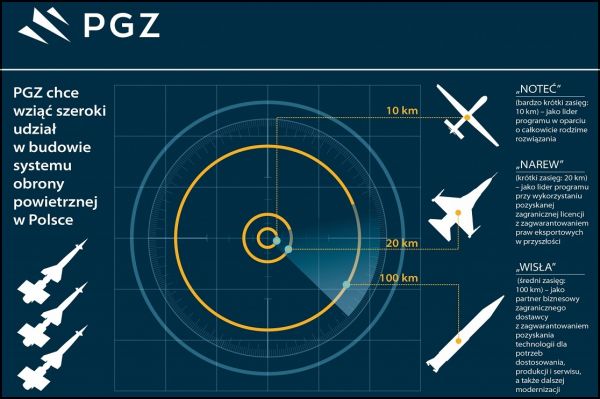Wart 16 mld zł kontrakt na zestawy rakiet przeciwlotniczych średniego zasięgu „Wisła” o zasięgu do 100 km przewiduje zakup 8 baterii do wprowadzenia od 2018 r. Wcześniej PGZ zawiązał konsorcjum do realizacji umowy na dostawę systemu obrony przeciwlotniczej bliskiego zasięgu „Narew”. Powołanie dwóch konsorcjów złożonych z tych samych podmiotów jest uzasadnione ze względu na dwa różne postępowania realizowane przez Inspektorat Uzbrojenia MON oraz różną rolę polskiego przemysłu w ich realizacji. PGZ chce, aby kompetencje nabyte przez członków konsorcjum przy realizacji „Wisły” zostały docelowo rozszerzone do realizacji programu „Narew”, ale także przy pracach nad dostawami systemów przeciwlotniczych bardzo krótkiego zasięgu (Noteć, Poprad, Pilica, Soła i inne).