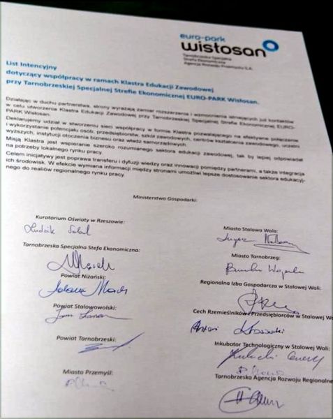Z ramienia Stalowej Woli pod listem intencyjnym o wspieraniu szkolnictwa zawodowego na Podkarpaciu podpisali się między innymi prezydent Stalowej Woli Lucjusz Nadbereżny, władze Tarnobrzega i Niska, przedstawiciele powiatu, RIG, Inkubatora Technologicznego, Cechu Rzemieślników i Przedsiębiorców.