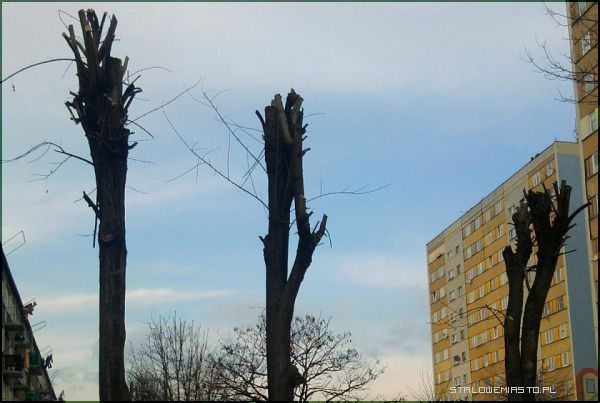 czyli uważasz że te paskudne kikuty są ok? To ma być dbanie o drzewa? Po cholerę takie drzewa? Nie lepiej wyciąć? Nie dość, że obcinają jak wyżej na zdjęciu, to jeszcze co jakiś czas te nieszczęsne kikuty przycinają, tak, że nawet odrobinę to nie ma szansy odrosnąć.