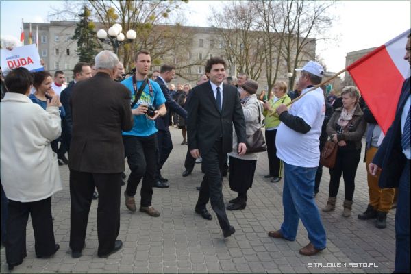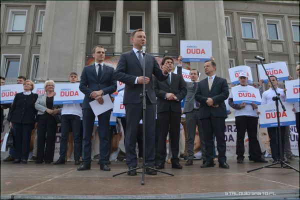 Andrzej Duda wraz prezydentem Stalowej Woli, który wspiera lokalnie kandydata z ramienia PiS, Lucjuszem Nadbereżnym i swoją ekipą wyborczą przybył na Plac Piłsudskiego tuż po godz. 14:00. Witany był przez licznie przybyłych mieszkańców powiatu głośno i donośnie. Wcześniej na scenie przed Miejskim Domem Kultury stanął przewodniczący Rady Miasta Rafał Weber, który w skrócie opowiedział o wizycie Andrzeja Dudy w Stalowej Woli. Kandydat przyjechał do naszego miasta, by wziąć udział w debacie "Gospodarka. Przedsiębiorczość. Biznes." Podczas tego spotkania podpisane zostało zobowiązanie (25.03.2015 roku).