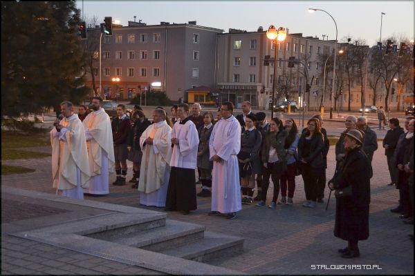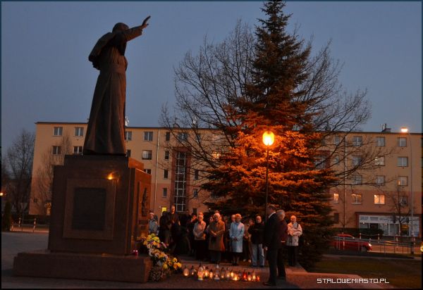 Po mszy świętej przedstawiciele lokalnych władz, z prezydentem Stalowej Woli Lucjuszem Nadbereżnym na czele oraz starostą powiatowym Januszem Zarzecznym złożyli wieńce i kwiaty pod krzyżem przy kościele. Mieszkańcy, którzy uczestniczyli w eucharystii zjednoczyli się w modlitwie przed pomnikiem św. Jana Pawła II. Na zakończeni zgromadzeni zaśpiewali "Barkę".