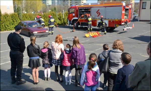Oprócz nagród, na dzieci i młodzież czekała niespodzianka – strażacy przygotowali dla nich pokaz akcji ratownictwa drogowego.