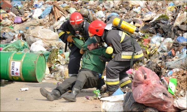 W tym roku, ćwiczenia odbywały się na terenie Stacji Segregacji Odpadów Komunalnych w Pysznicy. W ramach zaimprowizowanych sytuacji, doszło tu do skażenia chemicznego, podczas którego rannych zostało 2 osoby. Strażacy mieli pełne ręce roboty, ponieważ oprócz uporania się z chemikaliami, musieli również zagasić pożar, jaki pojawił się na niecce z odpadami.