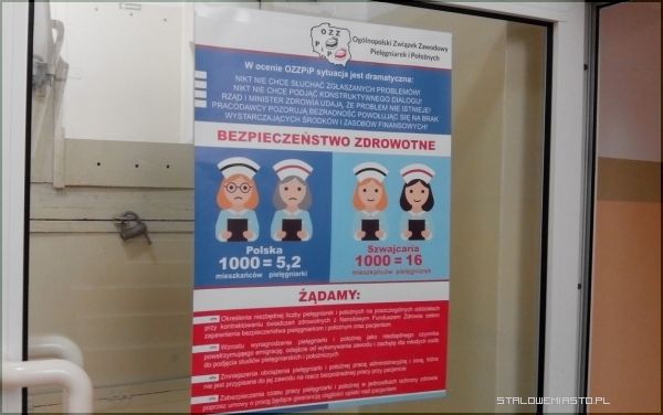 Stalowowolski szpital został oflagowany, pojawiły się też na nim plakaty Ogólnopolskiego Związku Zawodowego Pielęgniarek i Położnych, na których można przeczytać o żądaniach tej grupy pracowników. Wśród nich głównymi postulatami są: określenie niezbędnej liczby pielęgniarek i położnych na poszczególnych oddziałach przy kontraktowaniu świadczeń zdrowotnych z NFZ, wzrost wynagrodzenia pielęgniarek i położnych, zmniejszenie obowiązkowej pracy administracyjnej czy zabezpieczenie czasu pracy w jednostkach ochrony zdrowia poprzez umowę o pracę.