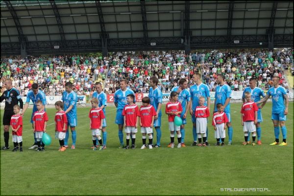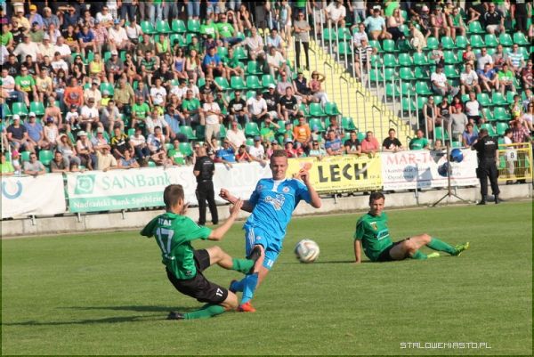 Błękitni, rewelacja rozgrywek Pucharu Polski, która odpadła z nich dopiero w półfinale z Lechem Poznań, była tego dnia wyraźnie lepsza. Być może losy meczu potoczyłyby się inaczej, gdyby w 34. minucie rzut karny wykorzystał Łukasz Sekulski. Najlepszy napastnik Stali, król strzelców II ligi wycelował w słupek. Tuż przed przerwą mieliśmy drugą „jedenastkę”, ale dla zespołu gości. Po faulu Mistrzyka na Wawszczyku, rzut karny wykorzystał Łukasz Kosakiewicz.
