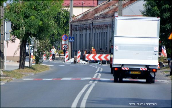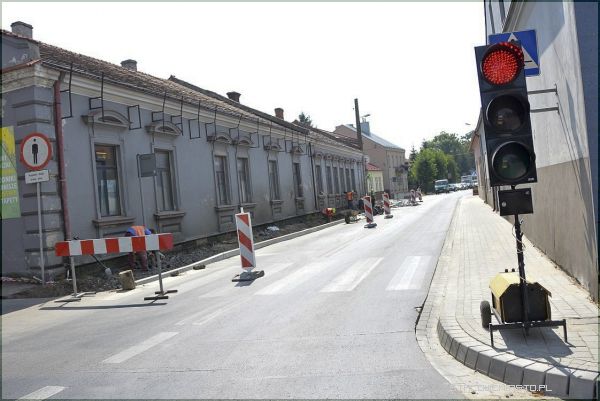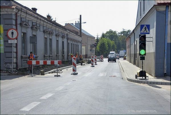 W miejscu tym zainstalowano tymczasową sygnalizację świetlną. Rząd aut wpuszczany jest wahadłowo. Chwilami, zwłaszcza w godzinach szczytu tworzą się korki. Lepiej więc omijać ten odcinek drogi w Stalowej Woli. W tej chwili położony jest już nowy, poszerzony chodnik z prawej strony (jadąc w stronę Stalowej Woli). Prace trwają przy ciągu pieszym z lewej strony drogi, która została zwężona o 1 metr, z 7 do 6. Zabieg ten ma spowolnić ruch w tym miejscu. Zamontowano również nowe krawężniki w jezdni. Za zakrętem (w stronę Rynku) dobudowano, z kostki 2-3 miejsca postojowe.