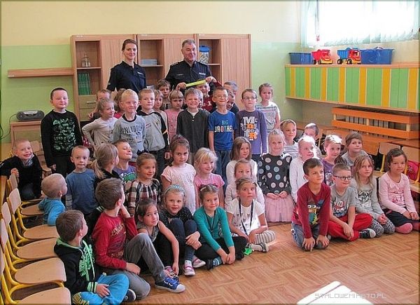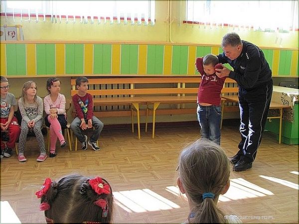 Podczas spotkania policjanci opowiadali o bezpieczeństwie zarówno w domu, w szkole jak i na ulicy. Przybliżyli podstawowe zasady zachowania się w domu, zasady bezpiecznych zabaw, zwracania uwagi na kontakty z osobami obcymi. Dużo uwagi poświęcili na bezpieczne zachowanie wobec zwierząt domowych, głównie psów. Policjant nauczył dzieci przyjmowania postaw obronnych przed atakującym psem.