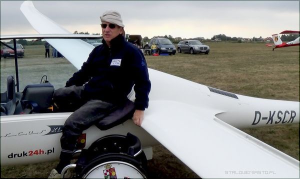 - Atmosfera jest fantastyczna, właściwie mogę powiedzieć, że rzadko zdarza się taki fajny zespół ludzi, którzy nas wpierają w tym co robimy, a latanie jest genialne. Tutaj jest rzeczywiście spokój, jeśli chodzi o ruch lotniczy, więc nie mamy żadnych kolizji, że ktoś tam przyleciał, że ktoś tam ląduję, jest jakiś większy ruch. Jest to bardzo fajne lotnisko do latania i są bardzo dobre warunki termiczne. Prawda jest taka, że ja wcześniej latałem, miałem również wypadek lotniczy. Latałem na lotniach, byłem instruktorem lotniarstwa wiele lat temu. Chciałem latać na szybowcach, ale w Polsce nie było po prostu dostosowanego szybowca. Po raz pierwszy w ostatnich latach pojawiły się takie maszyny, znaleźli się ludzie, którzy to dostrzegli i chcieli zorganizować takie szkolenia. Myślę, że będą mieli bardzo wielu chętnych. Dla mnie to był powrót do latania i jak gdyby spełnienie takich marzeń z dzieciństwa. Dla wielu ludzi będzie to odkrycie, które polega na tym, że jeśli lata się z kolegami pod jedną chmurą na jednym lotnisku, to nikt nie patrzy na to, że w tym szybowcu siedzi osoba niepełnosprawna, bo to nie ma żadnego znaczenia. Leci szybowiec, jest w środku człowiek, to jest pilot, więc wszyscy jesteśmy pilotami, nie czujemy się jak niepełnosprawni. Dosyć łatwo, dosyć szybko można zacząć latać, bo lata się z instruktorem. Latamy na szybowcach, które są dwumiejscowe, zresztą są również rozgrywane zawody, Mistrzostwa Europy, Mistrzostwa Świata w takich klasach dwuosobowych, gdzie też osoba niepełnosprawna może latać z osobą sprawną, także mamy już jakąś ścieżkę kariery sportowej przed sobą, można powiedzieć. Mamy znakomity przykład Adama Czeladzkiego, pilota, który w tej chwili jest wicemistrzem Europy. Jest to osoba, która jeździ na wózku. On pokazuje, że to jest możliwe, pokazuje to przede wszystkim władzom lotniczym, bo w dalszym ciągu badania lotnicze są tak jakby skonfigurowane, że utrudniają osobom niepełnosprawnym latanie. Jednym z wymogów jest to, żeby pilot samodzielnie opuścił kabinę szybowca, podczas gdy w Anglii nie jest już to temat- mówi Sławomir Besowski.