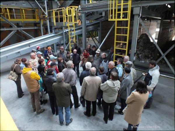 Grupa zwiedzających z dużym zainteresowaniem, oglądała halę rozładunku i pomieszczenia segregacji ręcznej. W krzyżowym ogniu pytań znalazł się kierownik ZMBPOK Janusz Siek, który pełnił rolę przewodnika. A pytaniom nie było końca. Atrakcją wycieczki dla najmłodszych okazała się biała, kosmiczna kula, czyli zbiornik biogazu. Męska część uczestników z zaciekawieniem oglądała park maszynowy. Koparko-ładowarka, mobilny rozdrabniacz gruzu i odpadów wielkogabarytowych, a także przerzucarka pryzmowa stały się obiektem zainteresowania wszystkich panów.